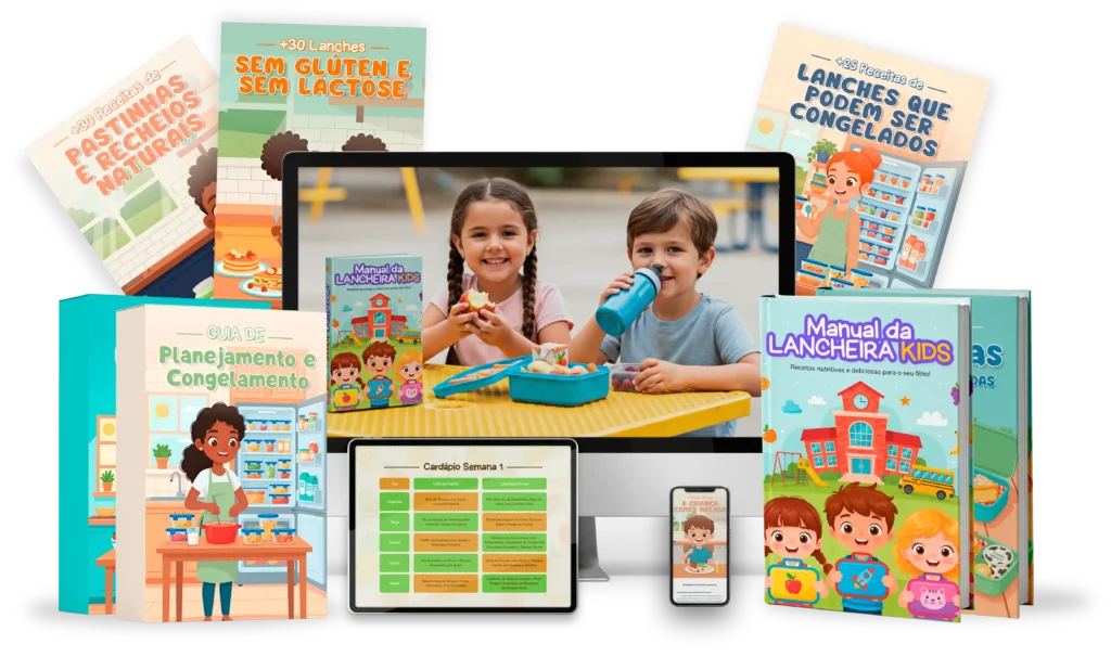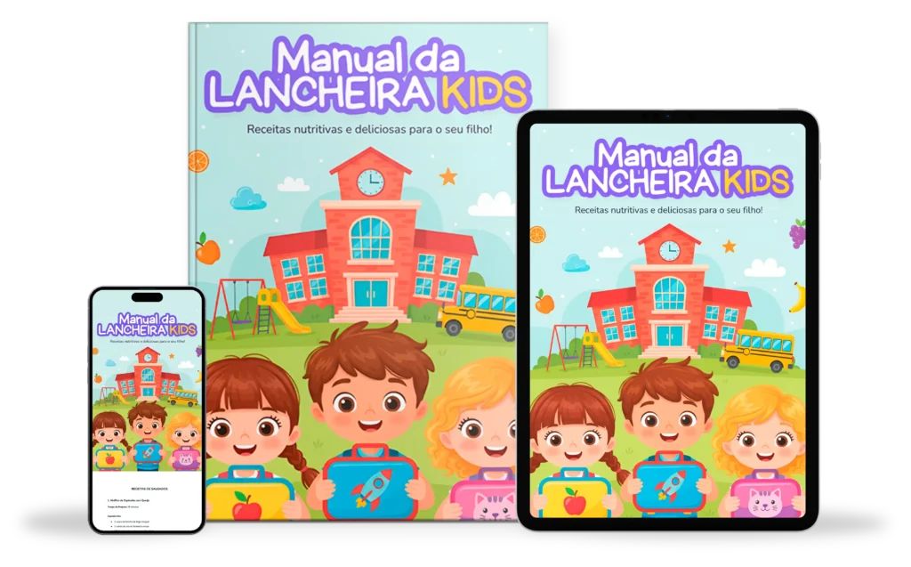 O Manual da Lancheira Kids é 100% digital. Assim que o pagamento for confirmado, você recebe o acesso imediatamente por e-mail e pode baixar para usar no celular, tablet ou computador.